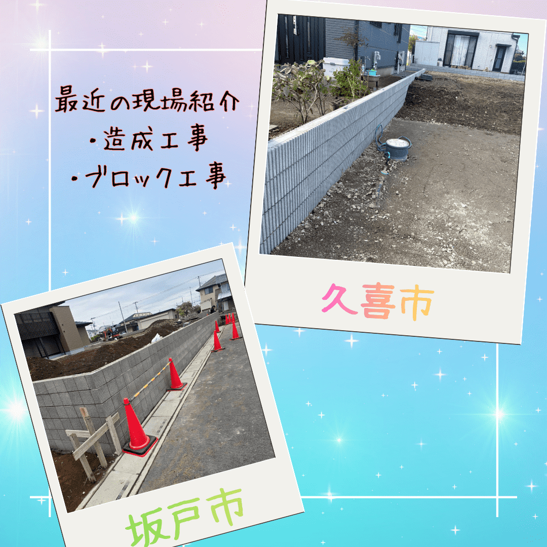 さて、今日は久喜市の造成工事と坂戸市のブロック工事の写真をアップしましたぜひ見てください