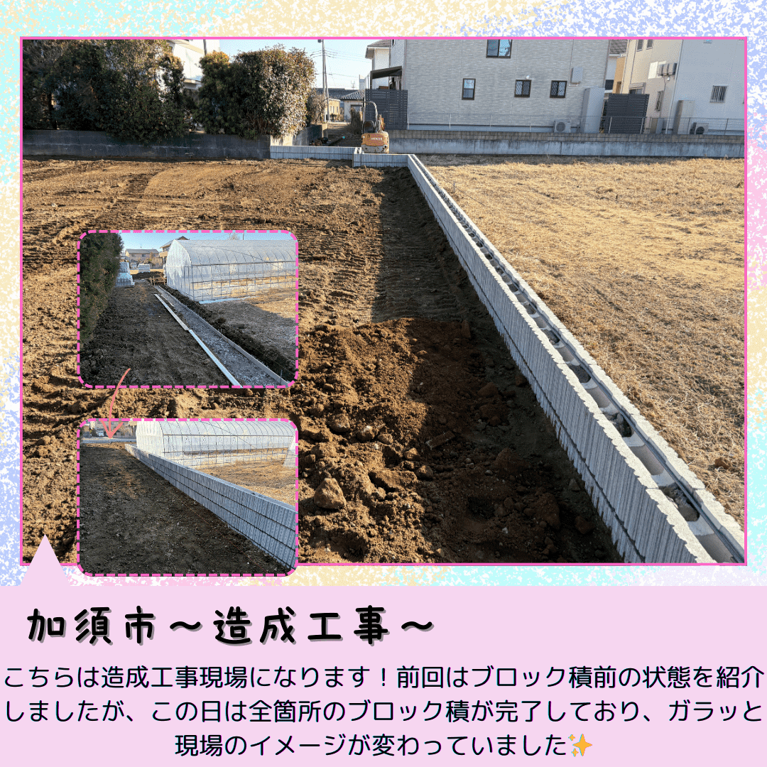 さて、今日は加須市の造成工事・桶川市の擁壁工事・東松山市の修繕工事の写真をアップしましたぜひ見てください